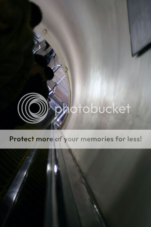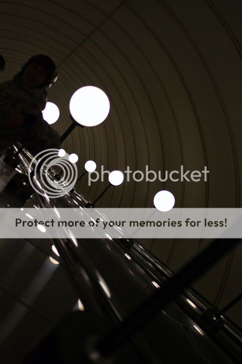 Встретилась с другом на Новослободской и поднимаемся наверх из метро